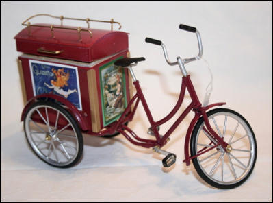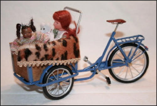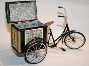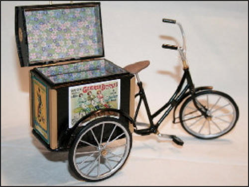 Die Idee, diese Räder anzufertigen, kam auch wieder aus einem Versandhauskatalog von 1901. Die spezielle Bezeichnung war:Transport-Dreirad.Hier ein Auszug aus der Beschreibung:Besonders starke und solide Bauart mit extra starken Pneumatics für ganz kurze Kurven resp. Drehungen eingerichtet Vollständig staubsichere Lagerung. Tragfähigkeit 200 kg.Ãhnliche Ausführung No 7, besonders für schwere Herren geeignet.